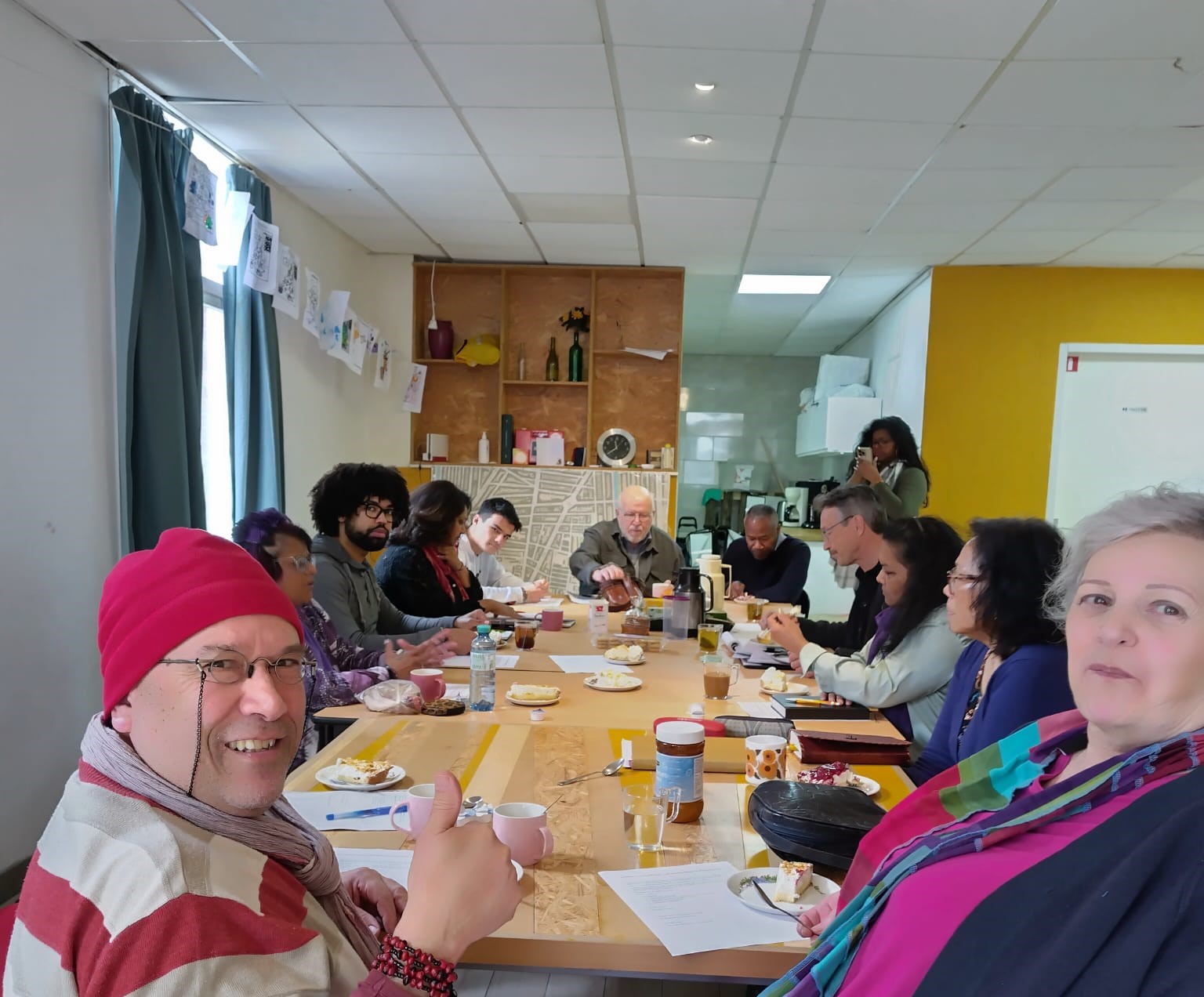 Eindelijk waren wij in de gelegenheid om iedereen bij elkaar te brengen in Den Haag op 15 maart. Aanwezig waren leden van URI NL en CC’s Kleurrijk Segbroek, Amsterdamse Vrouwengroep en Ken je Kracht. Duncan Wielsen heeft ervoor gezorgd dat er gebak was en Henk van Bentum heeft koffie en een mooie vergader plek verzorgd.
